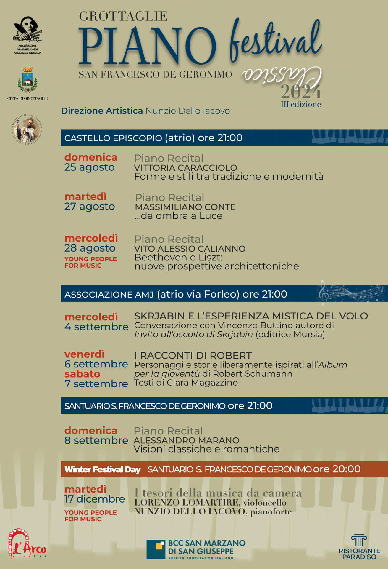 settembre, la programmazione musicale é formulata nel Piano Classico Festival, dedicato